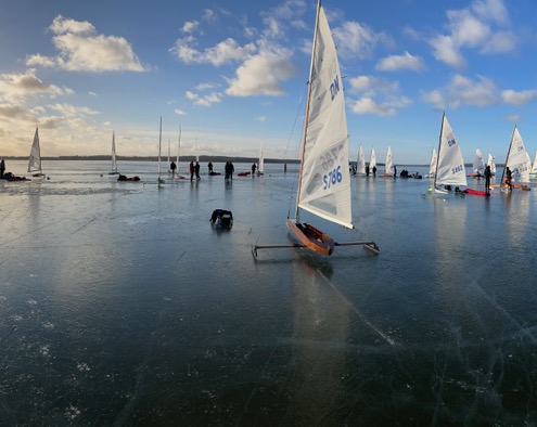 Eissegeln findet auf dem Eis statt und nicht auf dem Sofa vor dem Bildschirm. Das ist eine Erkenntnis, die nur schwer durchzusetzen ist wenn es einfach kein Eis gibt oder nur zweifelhaft besegelbares Eis weit weg im Norden. So erreichte uns in der letzten Woche, am 02.02.2025, eine Nachricht von G-51, Bernd Jahn, der für den LIPNO super Bedingungen ausrief. Krogo, G-749 und ich, G-99 verabredeten uns gleich für Montag, 03.02.25 vormittags zum laden und, um die lange Fahrt anzutreten. Unterwegs erreichten uns „Gerüchte“, dass der Mitropa Cup am Wochenende stattfinden soll. Was für ein Sahnehäubchen auf der Eistorte. Gleich erschien uns die lange Fahrt viel kurzweiliger.